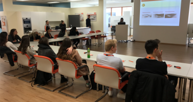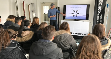 Die Schüler/innen aus dem Ausbildungsschwerpunkt Marketing erhielten einen Vortrag und eine Führung bei Kästle Ski in Hohenems.